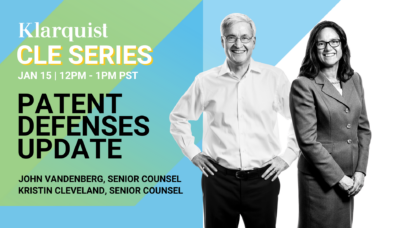 On January 15th, John Vandenberg and Kristin Cleveland will present our annual Patent Defenses Update. In addition to our year-end review, they will introduce our Patent Defenses AI prompts (available exclusively to clients) for analyzing a patent’s intrinsic evidence. They’ll also cover: